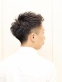 【ブックマークをしていただきカウンセリング時にお見せください】横と後ろをスッキリと刈り上げてトップはアイロンパーマをかけて動きを出しています!直毛の方でもアイロンパーマをかけることでゆるいカールで動きの出しやすい仕上がりになります!