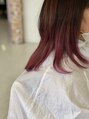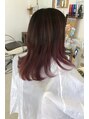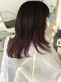 根本はしっかりと白髪をカバーしつつ、毛先に行くにつれバイオレットピンクの色味が濃くなるグラデーションカラーです。髪の負担を髪質改善トリートメントで軽減させ、エイジングを感じさせないハリ感・艶やかさのある髪へ。