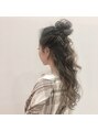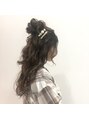 ハーフアップデザインカラーをいかしたアレンジ♪少しアシンメトリーデザインでかわいくなりすぎないようにちょっとしたお出かけでも気分転換におすすめです☆