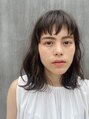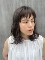 眉上の前髪で抜け感のあるミディアムスタイル☆束感が出るように質感を作りオイルをつけるだけでラフに決まります!大きめのウェーブで暗髪だけど重く見えないミディアムスタイルです!