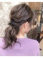 アディクシーカラーによる赤みオレンジみを抑えた透明感カラーにゴム1、2本でできる簡単アレンジをしたstyle☆家での再現性を大切にしている為、ご希望あればレクチャーさせていただきます☆慣れれば1分でできます!ぜひ一度永尾にご担当させてください♪