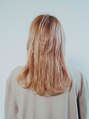 重めロングスタイルです。ハイレイヤーを入れることでボリュームポイントを上げ、巻いた時に毛先が重たくならないようにしています。カラーはブリーチを2回してピンク系カラーをオンしています。