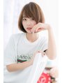 耳横でふわっとボリュームを持たせ、グラマラス&フェミニンに。前下がりラインで輪郭をカバーして小顔に見せた、技アリ似合わせナチュラルボブ。斜めバングで目力UPして美人顔に♪マッシュショートからの伸ばしかけの方にもオススメ。好感度大の愛されヘア☆