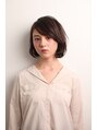 前下がりベースのナチュラルボブスタイル。前髪はシースルーにし、片側を耳にかけるのが◎