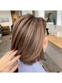 15レベル以上の明るさで根元が伸びてもいる状態から、「シャドールーツ」という特殊なオンカラーの仕方で、根元が伸びても気にならない、バレイヤージュ風のスタイルにしました。