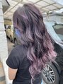 モーヴカラーで作るエアタッチバレイヤージュ。2カップで染めることでスタイルをより立体的に仕上げる事が出来ました。見ての通りオシャレです!