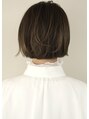 襟足スッキリ目に表面の長さを残した女性らしいシルエットのミニボブスタイルです。襟足をスッキリとすることで首がスッと綺麗に見えます。毛先を中心にパーマのかかったスタイルなのでスタイリングが苦手という方にもオススメのスタイルです。