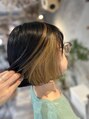 くくれる、アレンジできる長さのボブ。デザインカラーでお洒落ヘアに。