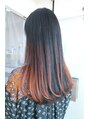 ロングヘアのバレイヤージュグラデーションカラーです◎エアタッチを使って自然なカラーの広がりが出るようにデザインしてます。こちらは前に入れたカラーの退色後にカシスオレンジをオンしました◎ブリーチ部分が残ってる限り色んなカラーが楽しめます。