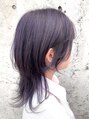 ブルーラベンダーカラー!ブルー味のラベンダー系は、退色中も退色後も透明感があって綺麗です◎ウルフstyleでクールに◎