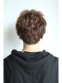 パーマによる躍動感とハネ感、長めの前髪が柔らかい印象を与えるスタイルです。パーマはトップは根元が立ちあがるようにかけ、それ以外はハネるように毛先中心にかけています。カラーはベージュブラウンでパーマの動きを際立たせる色味となっています