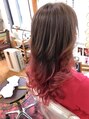 今回はグラデーションカラーに、ハイライトを少し中に入れて、上は明るさも希望だったので、スモーキーベージュ系で明るさを表現しつつ、下はピンクレッドで鮮やかさを表現しております^_^!