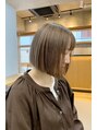 切りっぱなしボブ_くすみカラーラベージュラベンダーピンク
