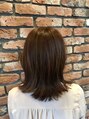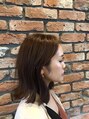 前髪のない、重めのボブディスタイルです。あえて、重めにして所々、ブツ切り感を出してます。カラーは柔らかな雰囲気のベージュグレージュです。髪の量が多い方や硬い髪の方などにも柔らかな雰囲気に出来るのでオススメです。