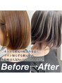 表面のみに筋感、毛先に明るさを楽しめるデザインカラー。こちらは襟足、もみあげに筋がないので縛った時に筋感がでません。どこを引き出しても筋感が欲しい方はパーフェクトエアータッチをオススメです。* Instagram ID @redeal_hair ご覧ください*