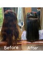 グラビアアイドルもやっている縮毛矯正で髪質改善になります。loanaトリートメントと組み合わせました。縮毛矯正をさせていただいて2週間以上あけてのネイビーアッシュにカラーになります。巻いている感じ縮毛矯正かけていると感じさせないよう仕上げました。