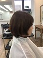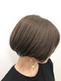 ショートから伸ばしかけの方にオススメなショートボブ。1度襟足の軽さがあると伸ばしにくいので、その部分をカットします。カラーは明るめのオリーブ。
