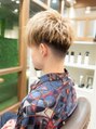 バックを大胆に0mmからのフェードスキン。トップは根本付近に空間を入れているので細かい動きがつけられます。コントラストが効いたオシャレ度が高いデザイン。