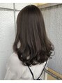 ワンレングスベースの前上がりスタイル ダメージレスのイノアカラーでツヤ感を出しました。毛先を軽く巻いて オイルをつければ完成☆