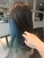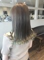 インナーカラーはブリーチをしてからグリーンをONトップは明るめのベージュカラー