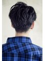 襟足とボリュームが出やすい耳まわりを刈り上げたツーブロックのスタイルに軽く柔らかい毛流れが出るようにゆるめパーマをかけました。地毛の黒髪と束感の出るパーマで大人のオシャレメンズヘア☆