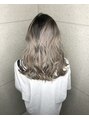 ダブルカラーのホワイトベージュです。リタッチで明るくせず地毛を活かしたグラデーションです。ブリーチ3、4回ベースです。