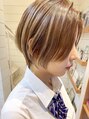- 女の子らしさも忘れない、少し丸みを残したハンサムショート♪ベージュの柔らかいカラーで優しい印象に^^