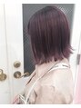 全体をケアブリーチでトーンアップした後、ダークチェリーピンクにカラー。しっかりと色味をいれることで色落ちが良いです。カットは切りっぱなしのボブでスタイリングが楽なスタイルです◎