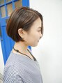 襟足すっきりなミニマムなショートボブ.お家でもお手入れが楽になれるよう提案させていただきます。白髪が気になる方や、いつもと雰囲気をちょっと変えたい方にもハイライトはおすすめです。