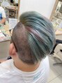 カット後ブリーチ後ポイントでピンクをランダムにいれてます!その他はグリーンなんだけど透明感もでるようにシルバーを混ぜることで甘すぎないクールな印象に仕上がりました☆