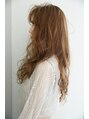 ロングヘアのゆるふわウェーブスタイル!ロングの王道でストレートよりもウェーブがあることでやわらかさが出て女性らしさが引き立ちます!センターバングなのでさらに大人クール感もでて印象を変えたい方にはおすすめなロングスタイルです!