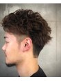 周りはバリカン・ハサミで短く刈り込み、男らしさを・・・。長さを残したトップにスパイラル気味にパーマをかけてランダムな動きが出るように仕上げています!!スタイリングも楽でカッコいいおすすめstyleです☆