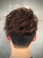 周りはバリカン・ハサミで短く刈り込み、男らしさを・・・。長さを残したトップにスパイラル気味にパーマをかけてランダムな動きが出るように仕上げています!!スタイリングも楽でカッコいいおすすめstyleです☆