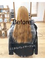 全体的にハイトーンのブリーチがしてある状態から、エアタッチバレイヤージュを入れて伸びてきても気になりにくいようにカラーしています。