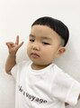 男の子のお子様に人気な短めマッシュヘア。サイド襟足をスッキリ刈り上げて トップの髪を短めマッシュに。