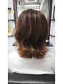 長かった髪をバッサリと!毛先と表面をハイライト状にブリーチ後カラー!色が抜けて来ても次回違う色を入れて楽しむことができます!