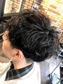 メンズのパーマスタイルです!くせ毛っぽくすることによって作り過ぎない雰囲気になるので、2ブロックがはいっていても柔らかい印象になります!!