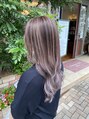 beige×ラベンダーホワイトのハイライトカラーです☆痛みを極力押さえながら髪の毛明るくしたい人などに特におすすめです!ポイントでブリーチを使っていくので通常のダブルカラーの3分の1のダメージで出来ちゃいます♪