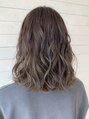 明るく退色して黄味が出ていたベースにブルーをあえて強めにいれて緑を出し、カーキベージュに仕上げました。くすみ感があり寒色系が好きな方に大人気なカラーリングです!