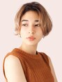 いろんな顔型に合いやすいセンターパートのひし形ベースのショート。丸顔さんや四角、卵型の方にも合わせやすいシルエットです。長めの前髪で小顔効果も◎カラーは根元をあえて暗くして外国人のような雰囲気のベージュに仕上げています。