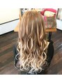 シルバーエクステをバレイヤージュ風に取り付けて、淡いピンクのエクステを表面に散りばめました^ ^