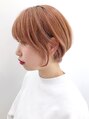 オレンジベージュ丸みショート_耳かけウェーブパーマ_ba279244