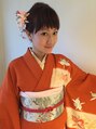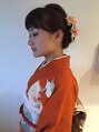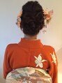 訪問着の着付け、ヘアセットをさせていただきました。オレンジのお着物に合わせた髪飾りもご用意ありますので、お気軽にご相談ください♪