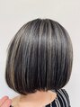 外国人風ボブ 白髪もぼかせるハイライト 透明感グレージュt1209