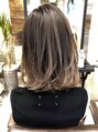 外国人風ウルフボブ ロブ ハイライトバレイヤージュ グレージュ