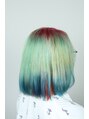 海外で人気になり始めているリバースヘアカラー風でピンクを。その先をミントグリーンからオーシャンブルーのグラデーション。インナーにはオレンジを入れた個性派カラー!目立つこと間違いなし!