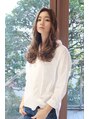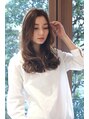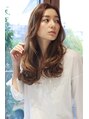 頬のラインから大きく揺らめくエアリーカールがフェミニンでグラマラスな印象。センターパートで大人クラシカルな雰囲気に。トレンドのミルクティカラーやグレージュだけでなく、グラデーションカラーやツヤ感あるメルトカラーで立体的に見せても綺麗。