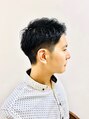 クセ毛を生かし、アウトラインをすっきり刈り上げたツーブロックスタイル。前髪は少し長めに残し軽くすることで、上げても下ろしてもキマる2WAY使用です。