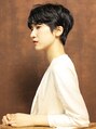 硬く見えやすい黒髪にクセ毛風の柔らかいカールをつけたショートレイヤースタイルです。襟足にくびれを作り、後頭部の丸みを強調させることで頭の形も首元も綺麗に見えます。洋服にも合わせやすいので、色々な雰囲気も楽しめると思います。