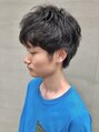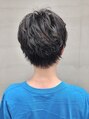癖毛風パーマヘアです。直毛の方でも、こういったニュアンスを付けるだけのパーマをかけると、セットがしやすくなったり、硬い印象も和らげて優しい雰囲気が出せます。耳周りを短くカットしているので刈り上げを入れなくても清潔感が出せます。